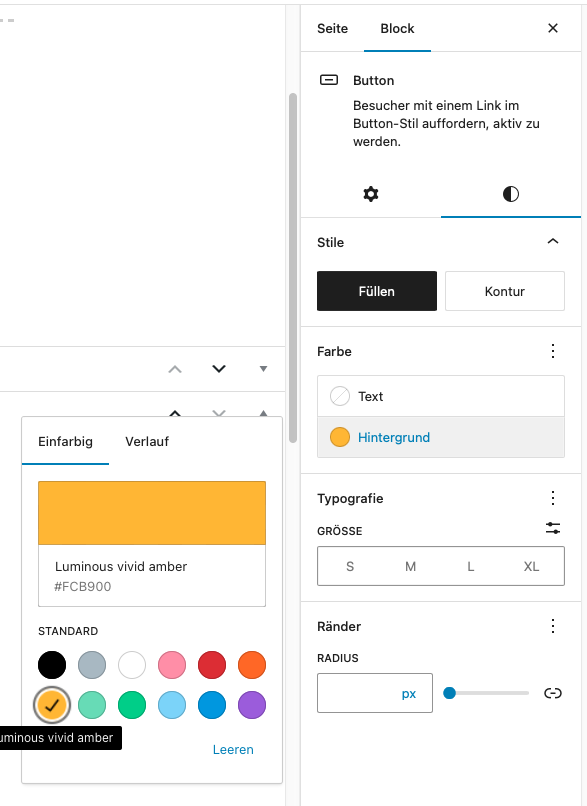 - Typografie: Hier können Sie die Größe des Button-Textes verändern (S, M, L, XL)