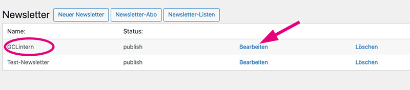 Klicken Sie auf „Bearbeiten“, dann kommen Sie in die Bearbeitungsmaske des GCLintern-Mailings.