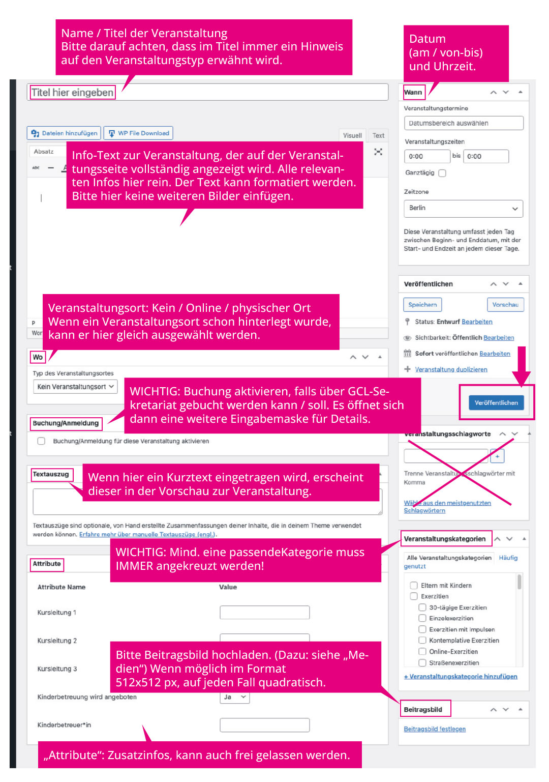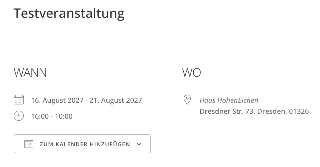 Wenn alle notwendigen Felder ausgefüllt sind, kann die Veranstaltung veröffentlicht werden. Sie erscheint jetzt an allen dafür vorgesehenen Stellen.